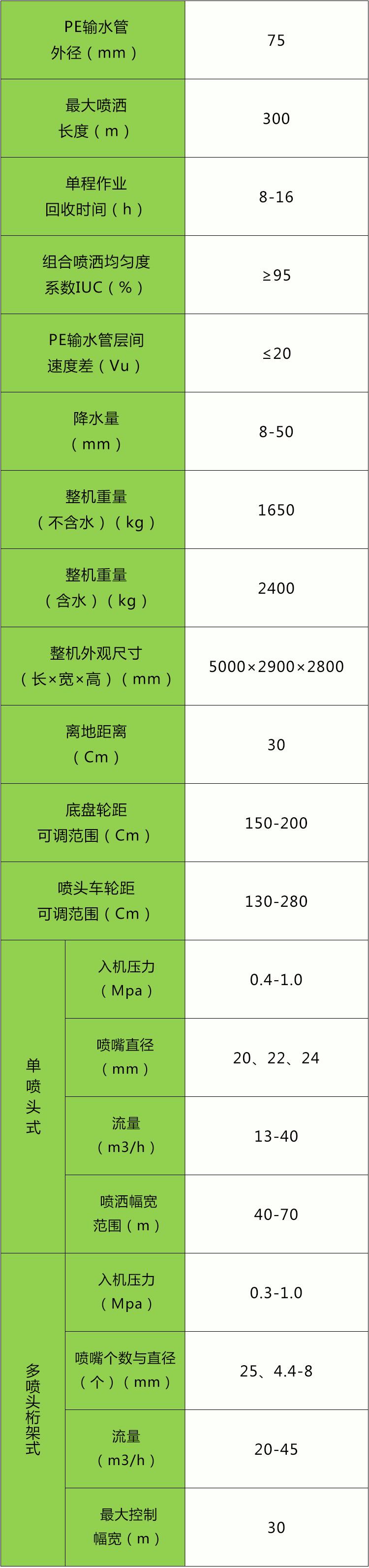 • 8JP75-300四檔型淋灌機